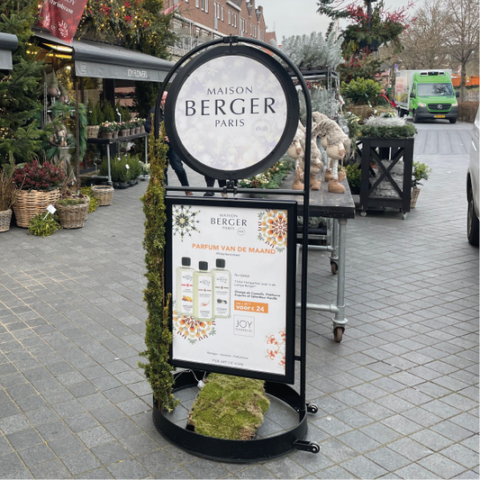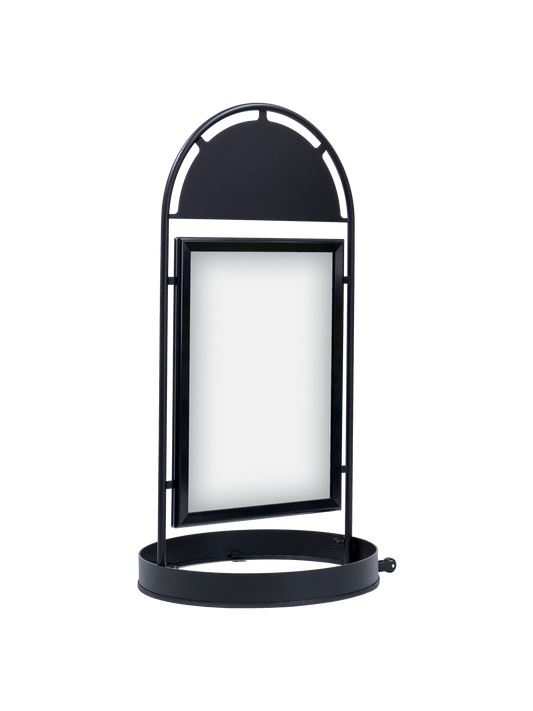 De Rotator met ronde voet of watervoet is de nieuwste ontwikkeling op het gebied van stoepborden. Door het toevoegen van een draaiende vlag, zal het stoepbord extra opvallen in de straatbeeld.